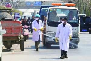防疫人员在奶东村打药消毒。