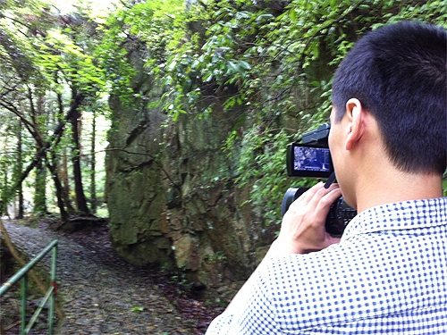 记者走进山间采访拍摄
