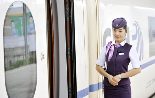 高铁试验车上的女乘务员