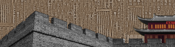 以西门口原有老城城墙及望京楼城楼为前景,通过石头色彩和透视方式体现城楼的伟岸。背景为黄宗羲撰写的《天一阁藏书记》,文字为铜抛光浅浮雕。用灰色稳重的石头和发亮的金属材料对比,共同构成了一幅反映宁波特色的古朴画卷。