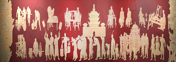 作品以“朱金木雕”这一国家非物质文化遗产的宁波传统工艺为表现形式,以浓郁的宁波风俗场景和人物为主题,月湖的鸟瞰俯视图雕刻在红色背景中,表现宁波鼓楼的地域特征和地方风情。画面整体效果色彩喜庆,雅俗共赏,符合公共艺术品表达的互动性。