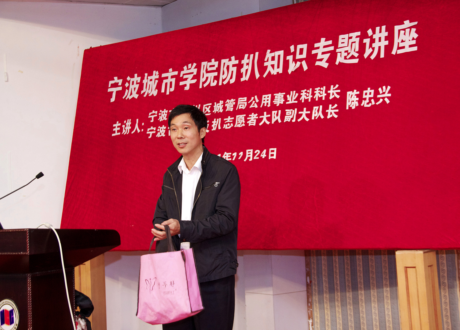陈忠兴,男,47岁,中国共产党党员,宁波市鄞州区城市管理局公用事业科科长,现任宁波市义务反扒志愿者大队副大队长。