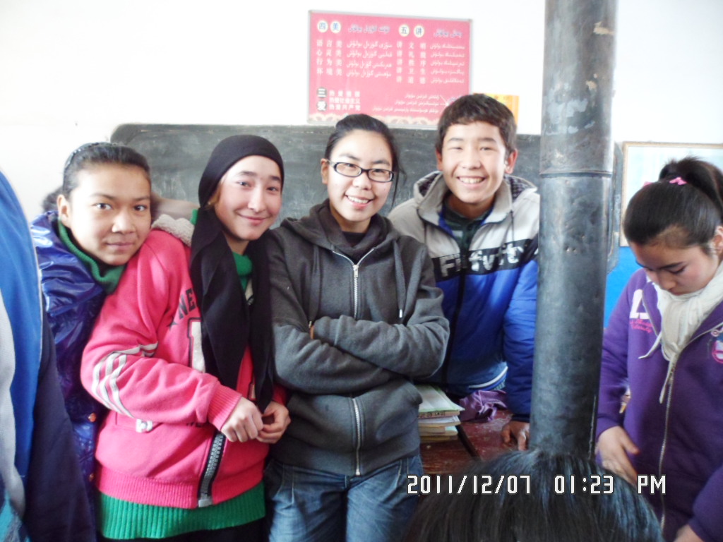 达浪坎一中有13个班级300多名师生。除了胡惊雨,所有师生都是维吾尔族,她被安排负责8个班级的英语教学。远离家乡,饮食、气候、语言等等问题,使得胡惊雨一开始有些不太习惯。而最大的困难就是语言上和学生的沟通。发音不准、声调不对、语法基础差等问题使得工作强度以及难度都很大,教学起来尤其吃力。可是胡惊雨凭借着自身毅力以及志愿服务的一腔热情很快克服了这些困难,在没有工资,从未给学校提过任何要求的情况下坚持了下来并得到了当地学生和老师的一致好评。一学年至少40周,一周至少12节课,胡惊雨用近500节课书写青春赞歌。同时,胡惊雨常常被这些可爱的学生感动着。课堂上,孩子们叫她老师,课后,孩子们都亲切地称呼她玉儿吐斯“姐姐”。得知她喜欢吃米饭,就有学生从家里带来抓饭,悄悄放到她的桌上,夜里怕她一个人睡觉害怕,班里的女生就拉着她去女生宿舍一起睡觉。“一个富庶省份的女孩,只身来到千里之外的新疆支教,没有工资,从未向学校提过任何要求,对学生就像对自己的亲弟弟、亲妹妹一样。”达浪坎一中校长斯迪克·尼亚孜评价胡惊雨是“我们学校最优秀的老师”!