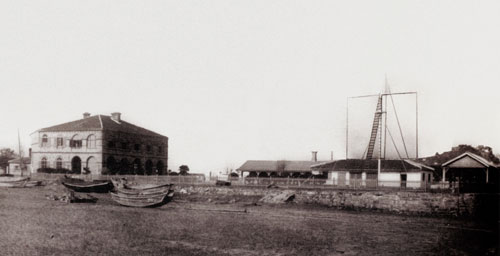 宁波自五代起就有海关的萌芽,至清朝,设立海关,当时称浙海常总关。原址在江东木行路(今江东北路。图为1763年建造的浙海常总关的远景。