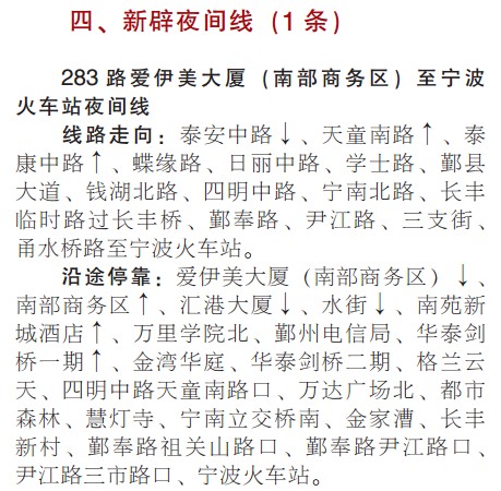 283路(爱伊美大厦至宁波火车站 夜间线)