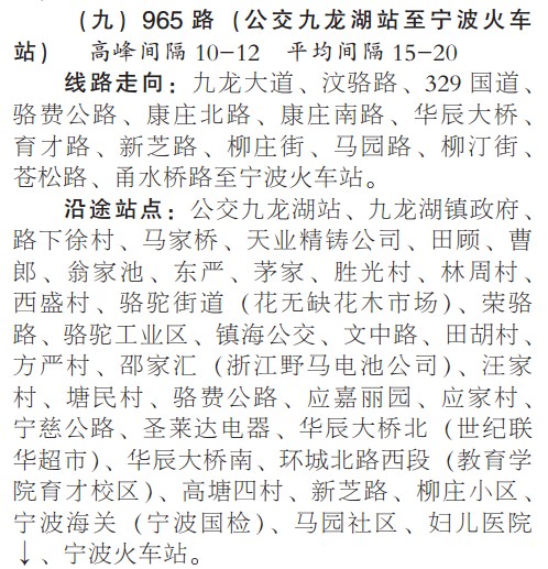 965路(公交九龙湖站至火车站)