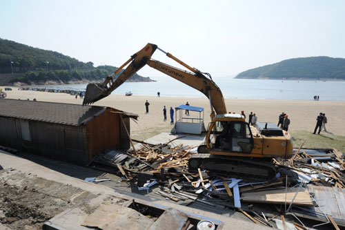 今年4月,县风景旅游局、丹东街道等多部门联合对松兰山违法建筑进行强制拆违,由此打响了象山海域整治的第一枪。紧接着,石浦镇对搭建在好望角码头、国庆塘海塘内侧的的违章建筑进行拆除,“三改一拆”海域整治专项行动渐进“深水区”。