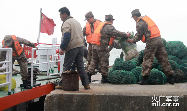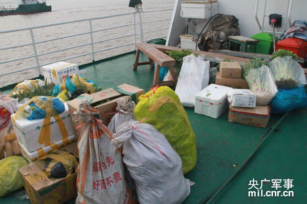 通过民用客轮给岛上官兵运送蔬菜、水果