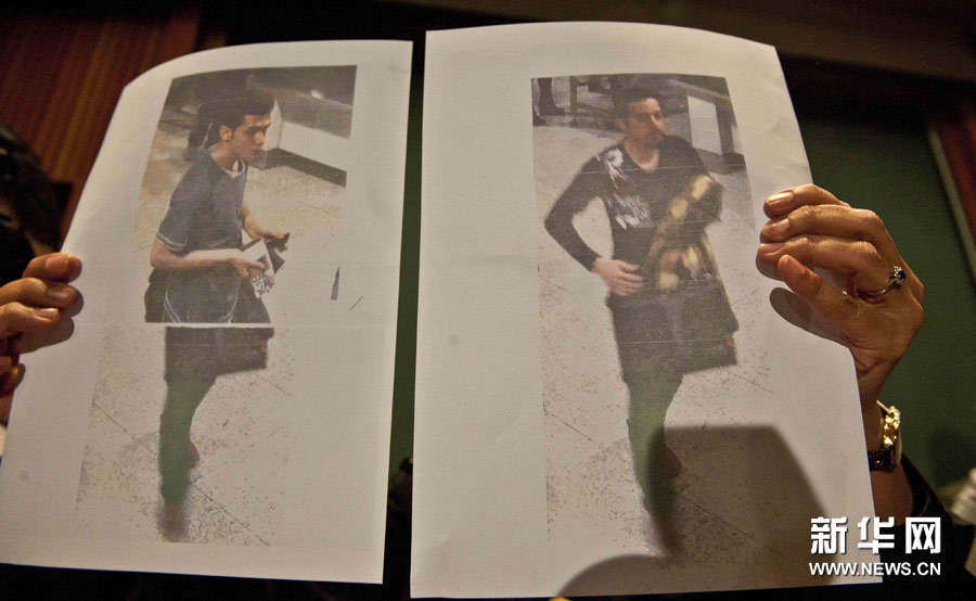 图为马来西亚官方3月11日公布的冒用护照嫌疑人照片。左为19岁伊朗男子,右边照片主人身份还不确定。当日,马来西亚方面在吉隆坡国际机场附近的一家酒店召开新闻发布会,之后公布了两张马航失联客机上冒用护照嫌疑人的照片。其中一名是19岁伊朗男子,其目的是移民德国。新华社记者何靖嘉摄