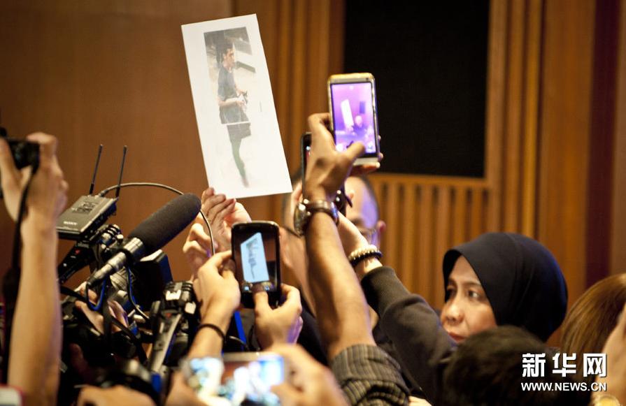 3月11日,在马来西亚吉隆坡国际机场附近的一家酒店,记者拍摄一名冒用护照嫌疑人照片。照片上是19岁伊朗男子。当日,马来西亚方面在吉隆坡国际机场附近的一家酒店召开新闻发布会,之后公布了两张马航失联客机上冒用护照嫌疑人的照片。其中一名是19岁伊朗男子,其目的是移民德国。新华社记者何靖嘉摄