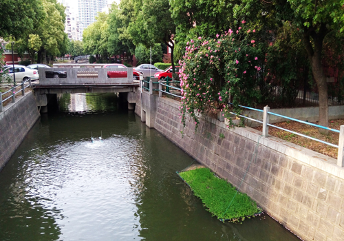 春天的绿,河水的绿,相映成趣,让上班路上的心情感到愉悦。