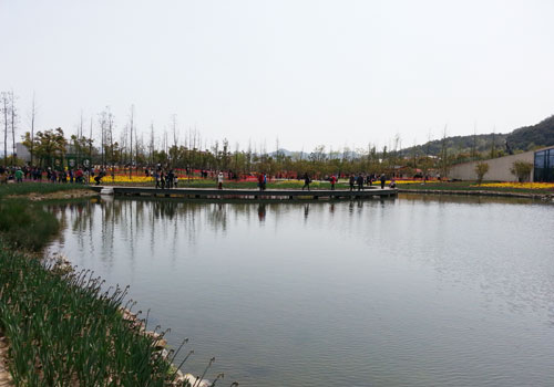 郁金香配上东钱湖的水,相映成趣。花美、水美、人更美。