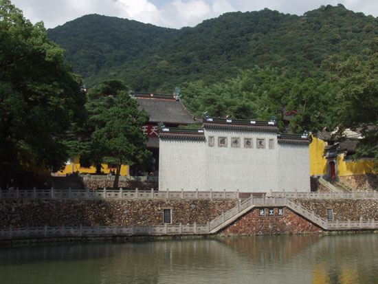 天童寺位于鄞州区东吴镇太白山南麓,整个建筑以山形成阶梯式布局,总体平面由南而北。纵轴线上有:外万工池、七佛塔、内万工池、天王殿、钟楼等建筑,计30余幢,(旧说计999间)。