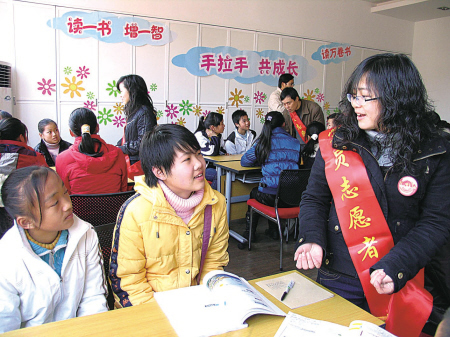 针对外来务工人员子女学习基础较差的现状,“假日学校”本着“需要什么补什么”、“哪里不足补哪里”的宗旨,组织教师对学习有困难的学生进行辅导,让他们能跟上正常教学进度,增强他们的学习信心。