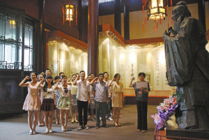 镇海中学教师在孔子像前宣誓。通讯员曾昊溟摄