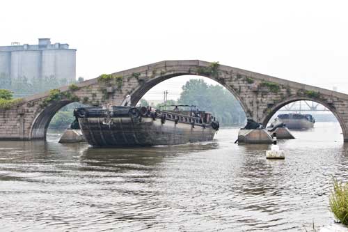 嘉兴,城北运河上的长虹桥。乾隆下江南时,此桥曾为接驾处。她是大运河上至今仍在使用的三座大型石拱桥之一。