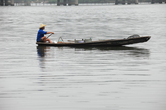 绍兴,一叶小舟划过运河。