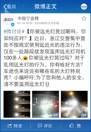 彪叔是我:本人认为使用远光灯是不礼貌,不文明,底素质行为!而且危害很大!我想应多通过谋体宣传,交警在这方加大检查力度。就是辛苦交警了