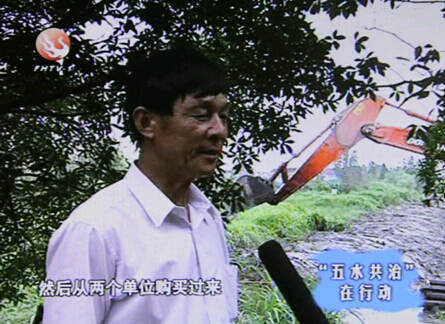 水陆两栖挖掘机的户主—东陈村党支部书记陆如忠是名老党员,连续多年当选奉化市人大代表、奉化市党代表。在“五水共治”的号召下,思想觉悟高、政治素养好的陆如忠围绕全市“清三河”目标,四处支援,八方帮助。西坞街道泰桥村、四维村、西街河及江口街道,均有这台水陆两栖挖掘机的身影,甚至邻近的鄞州区姜山镇也派人来邀请帮助治水。对此,陆如忠从大局出发,积极协商清淤办法,义无反顾地驱车前往,加班加点,提速提效,一天当作三天用,力争把治水工作做到前面,全力加快推进治水速度。