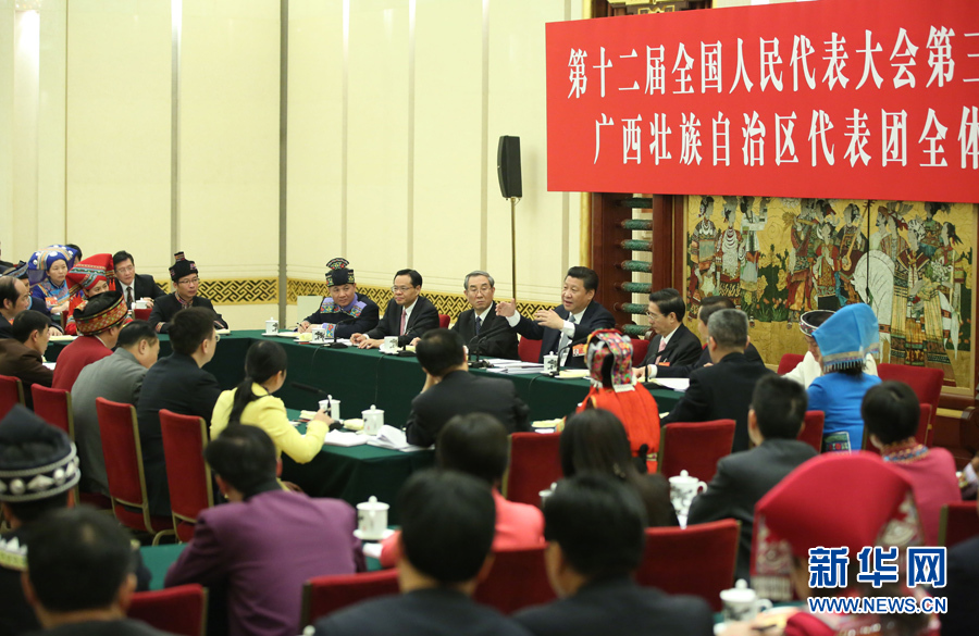 3月8日,中共中央总书记、国家主席、中央军委主席习近平参加十二届全国人大三次会议广西代表团的审议。新华社记者兰红光摄