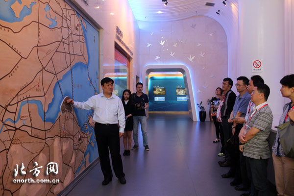 天津北方网讯:6月4日,参加“牵手中东欧建设港口经济圈——网络媒体总编辑宁波行”活动的网络媒体负责人和记者来到杭州湾新区,先后参观了新区城市展览馆、宁波华强·中华复兴文化园建设施工现场、杭州湾国家湿地公园、方太集团,并与杭州湾新区管委会相关负责人进行了深入交流。