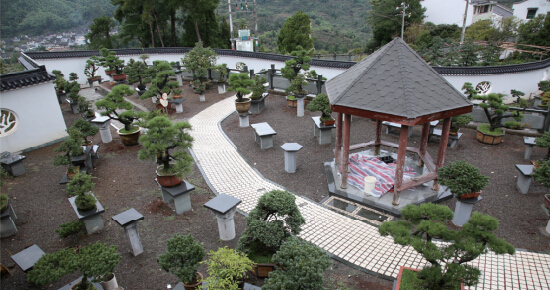 三十六湾又被誉为花木第一村,由于地处海拔600米的高山,村民全靠种茶叶、竹木、杂粮等为生。一百多年前,这里的村民引进月桂、大红宝珠茶花种植获得成功,便有了现在高山花园村的盛景。村道旁、阳台前、院墙上,甚至楼房顶,随处可见一盆盆造型别致的五针松,勾勒出山村独特的艺术景象,令人仿佛置身于一个巨大的盆景园。