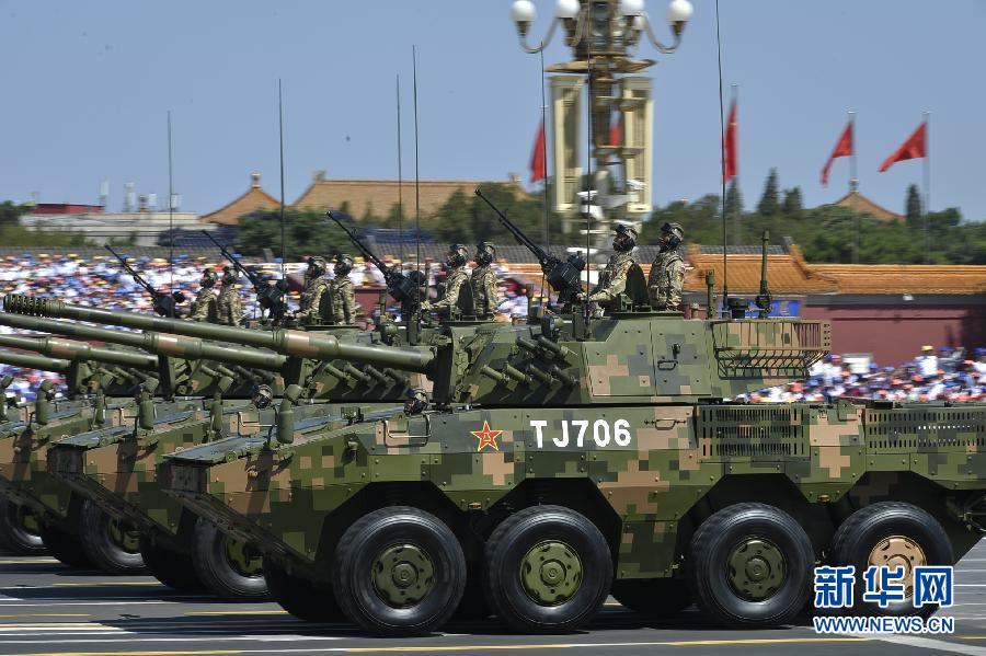 9月3日,中国人民抗日战争暨世界反法西斯战争胜利70周年纪念大会在北京隆重举行。这是轮式装甲突击车方队接受检阅。新华社记者彭昭之摄
