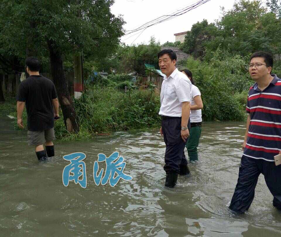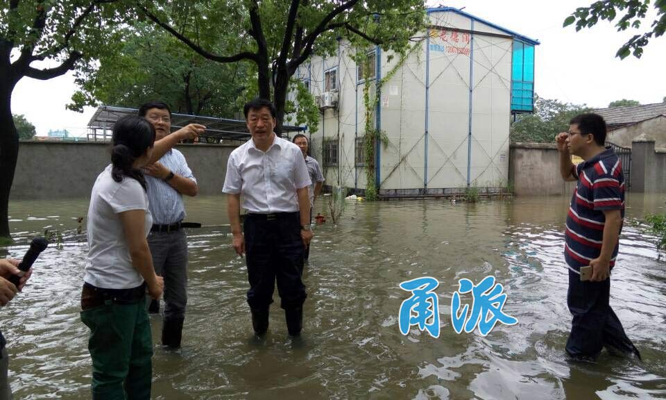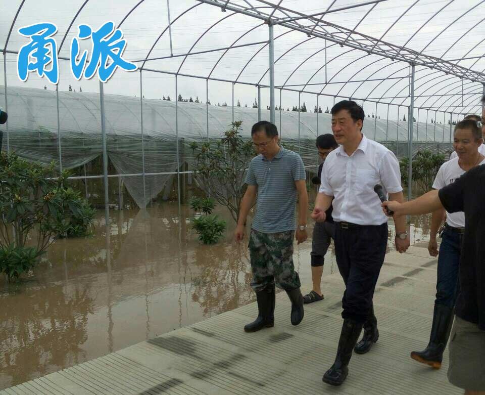 澥浦是镇海降雨量最大的区域之一。 中午,刘奇一行来到位于蟹浦的甬丰现代农业示范基地,看到大棚大面积被淹,作物都浸泡在水中,几台水泵正全力排水。