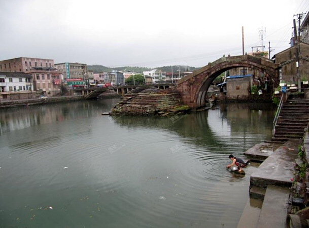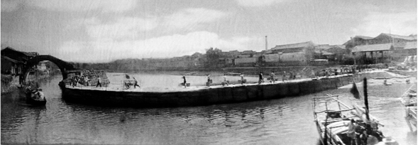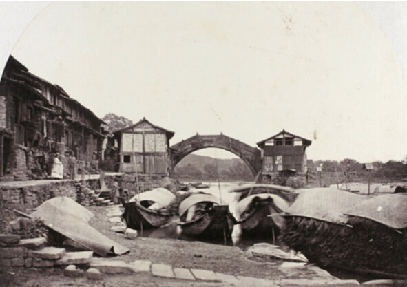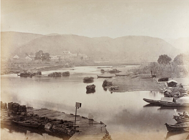 它山堰渠首工程之光溪桥(左)与官池塘(右)(1870年代)