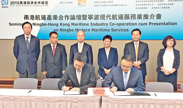 香港文汇报讯(记者 周方怡) 在甬港经济合作论坛分论坛之一甬港航运产业合作论坛上,甬港两地航运企业就如何融入“一带一路”战略展开研讨。会上宁波江东区与香港贸发局、香港中国企业协会分别签署经贸战略合作协议,决定共同推进航运服务业招商合作,提升甬港两地航运服务业深度融合。