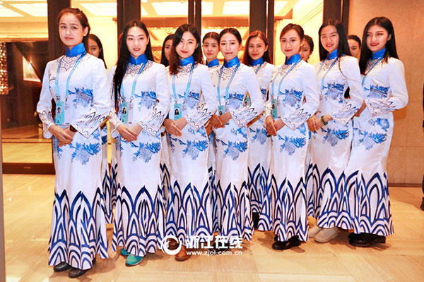 世界互联网大会青花瓷旗袍亮相 美女大学生高雅端庄