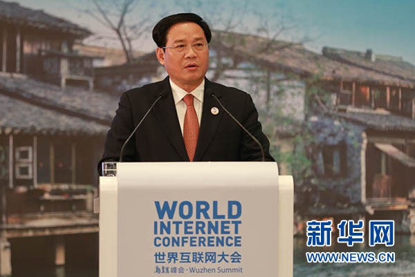 12月17日下午,第二届世界互联网大会“互联网+”之智能制造转型与升级议题在乌镇举行。图为第二届世界互联网大会组委会主任、浙江省省长李强在议题上发表主旨演讲。新华网祝立铭摄