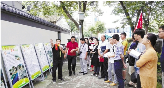 8700多名各级河长忙碌在治水一线。图为新桥街道总工会主席、长浃河河长朱忠亮为该市生态化探访团介绍治水情况。