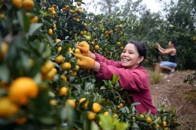 ↑2015年9月26日,在南丰县市山镇炉下新村,橘农在采摘第一批成熟的蜜橘。新华社记者陈子夏 摄