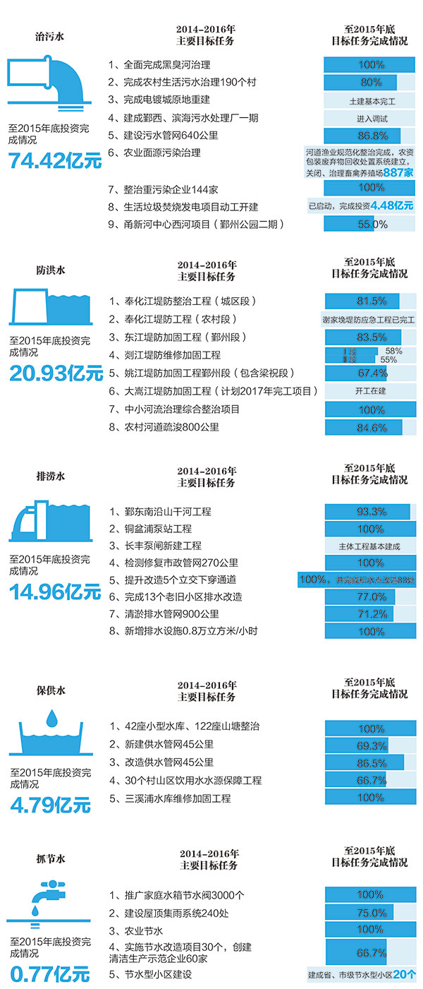 围绕“三年任务两年完成”的工作目标,鄞州进一步加快“三河”整治步伐,去年已完成河道清淤疏浚290公里,建设生态河道10公里,整治城区内河22条,实施城区内河水质养护60条,投入河道市场化保洁资金超3000万元,跨流域调水超亿方。截至目前,列入省“三河”名单的69条垃圾河、黑臭河已治理完毕并通过验收,顺利摘帽,境内其他存在垃圾及黑臭问题的191条河道也完成了相应的整治工作。截至去年底该区完成治水投资超50亿元,累计投资约115亿元。