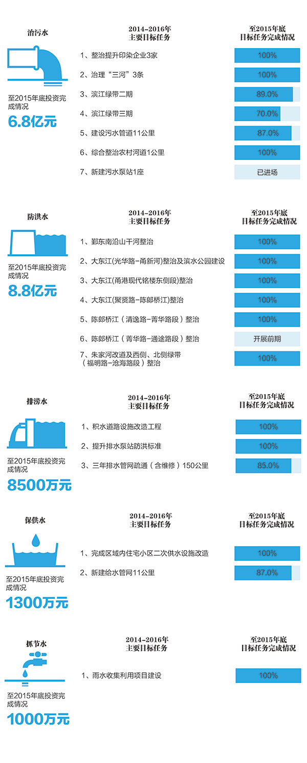 经过这一系列建设,该区水面率从2011年的6.9%提升至2015年的8.3%,水质得到了明显改善,区域防洪、蓄洪、泄洪能力也大幅提高。今年,该区将根据实际情况,进一步提升“五水共治”工作标准,补充增加一批“治水”项目,促进“五水共治”整体工作。