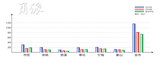 明天是联合国确定的“世界水日”。宁波市2015年水资源公报今天出炉了。公报显示,2015全年面平均降水量2078毫米,为有水文资料记载以来的第二大值,仅次于2012年的2104毫米,比多年平均多37%,属丰水年份。