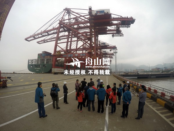 舟山网(大海网)讯(舟山网记者陈毅人)下午,“活力浙东”新闻媒体联合采访团来到穿山港集装箱码头。听取宁波港吉码头经营有限公司、宁波远东码头经营有限公司副总经理徐伟武作码头情况介绍,并进行实地采访。