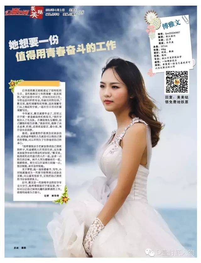 在兼职做礼仪模特,自己赚钱补贴生活费。”