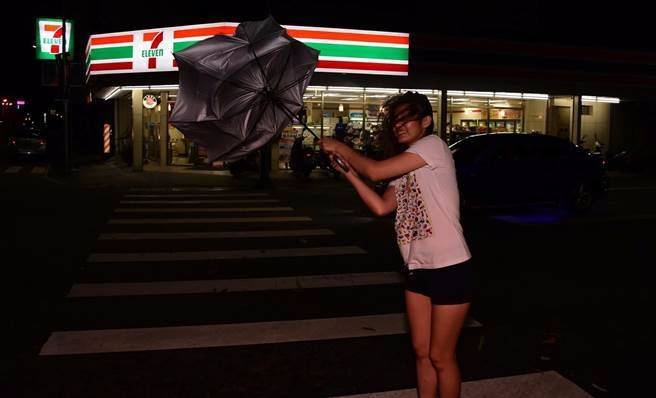 尼伯特台风过境台湾,行人举步维艰