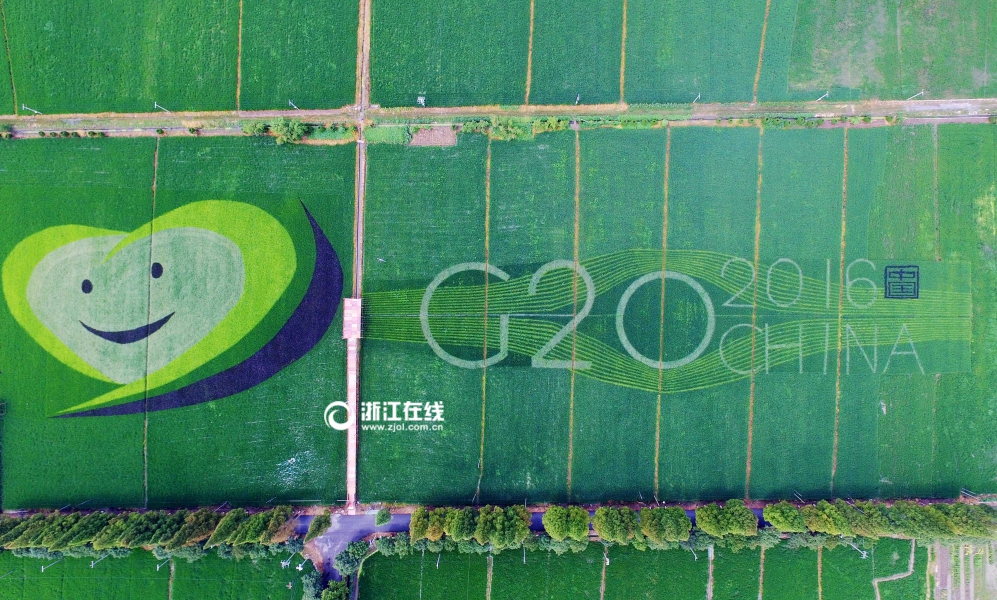 喜迎G20 杭州有片稻田种出了“笑脸”(组图)