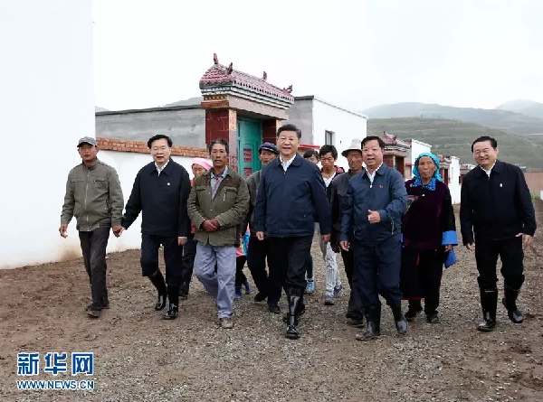 图为:2016年8月22日至24日,中共中央总书记、国家主席、中央军委主席习近平在青海调研考察。这是8月23日上午,习近平在海东市互助土族自治县五十镇班彦村新村建设工地考察易地扶贫搬迁情况。