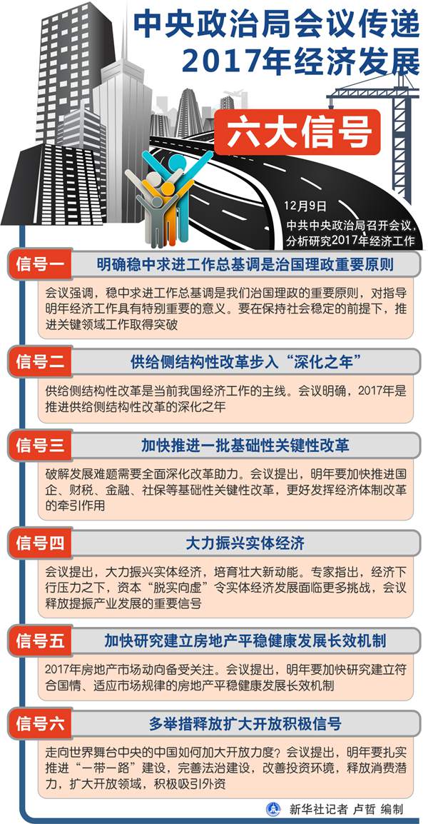 新华社北京12月9日电题:中央政治局会议传递2017年经济发展六大信号