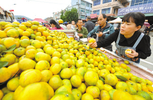 这两天正是橘子的采摘期,长街人葛良方从当地收了2000公斤新鲜橘子来赶集。