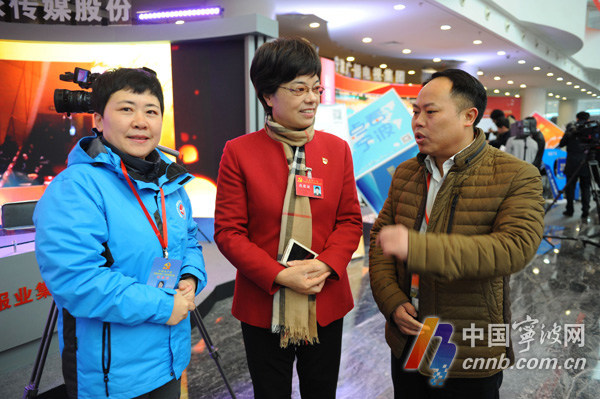 大会秘书长余红艺来到宁波日报报业集团直播室