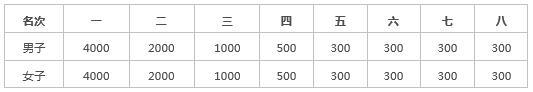 (一)马拉松 男、女前八名分别获得奖金(人民币):