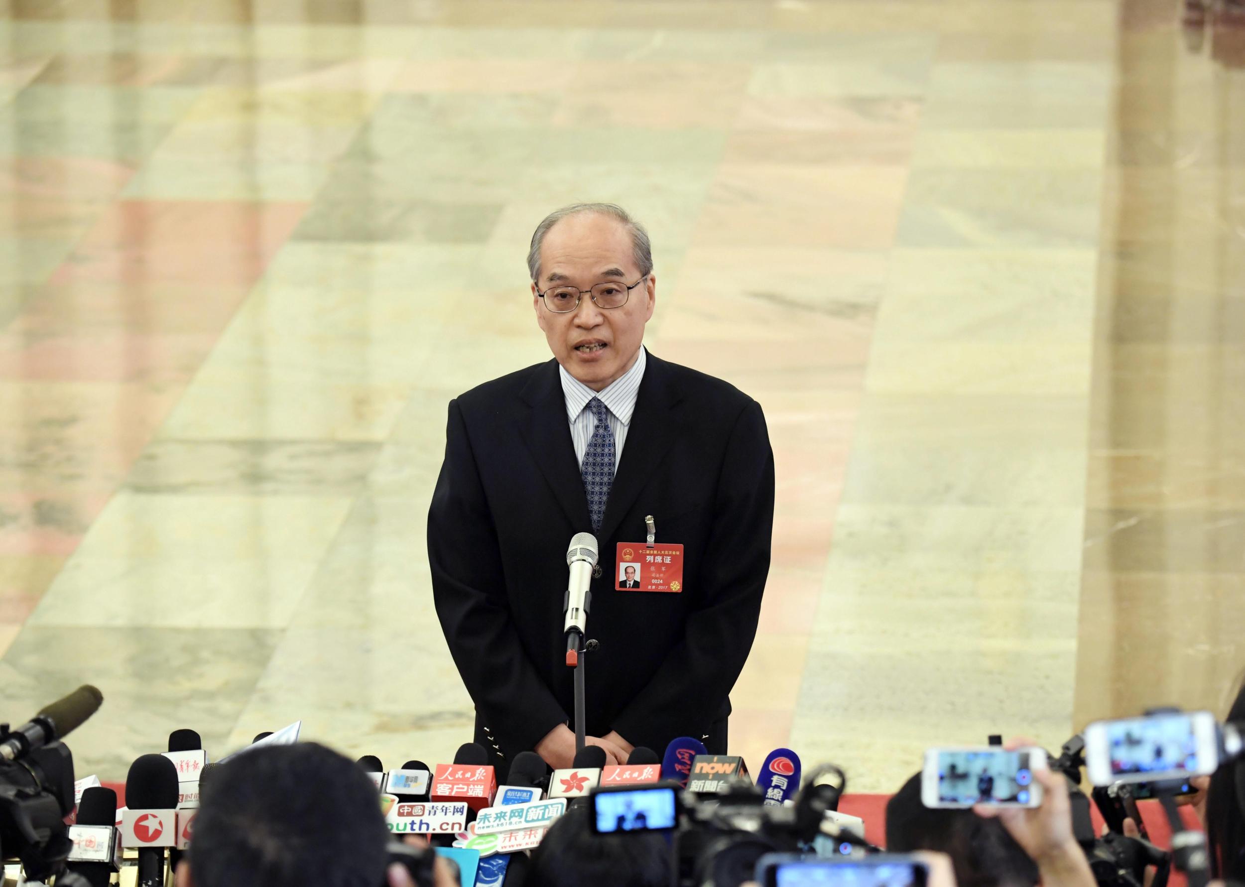 3月12日,十二届全国人大五次会议在北京人民大会堂举行第三次全体会议。这是司法部部长张军接受采访。新华社记者赵颖全摄