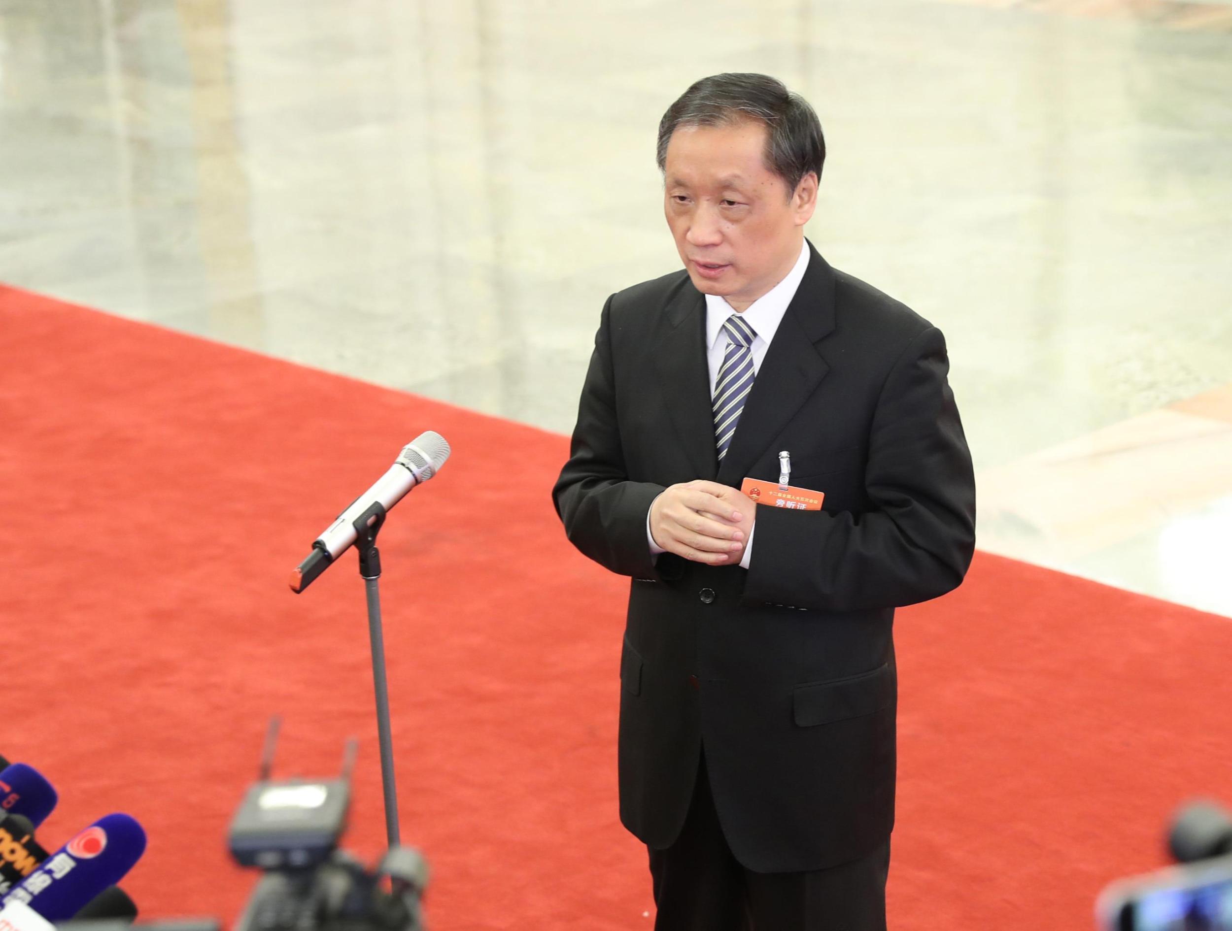 3月12日,十二届全国人大五次会议在北京人民大会堂举行第三次全体会议。这是国家旅游局局长李金早接受采访。新华社记者张玉薇摄
