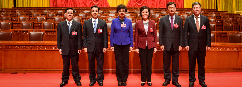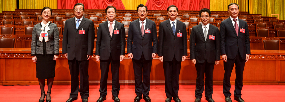 新一届宁波市人大常委会领导班子:(左起)王建社、王建康、余红艺、翁鲁敏、胡谟敦、俞雷。