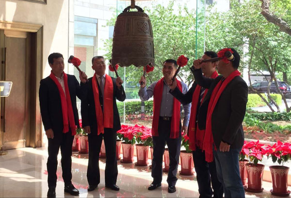 宁波日报报业集团党委书记、社长、甬派传媒董事长蒋旭灿(左二)敲响开市宝钟!